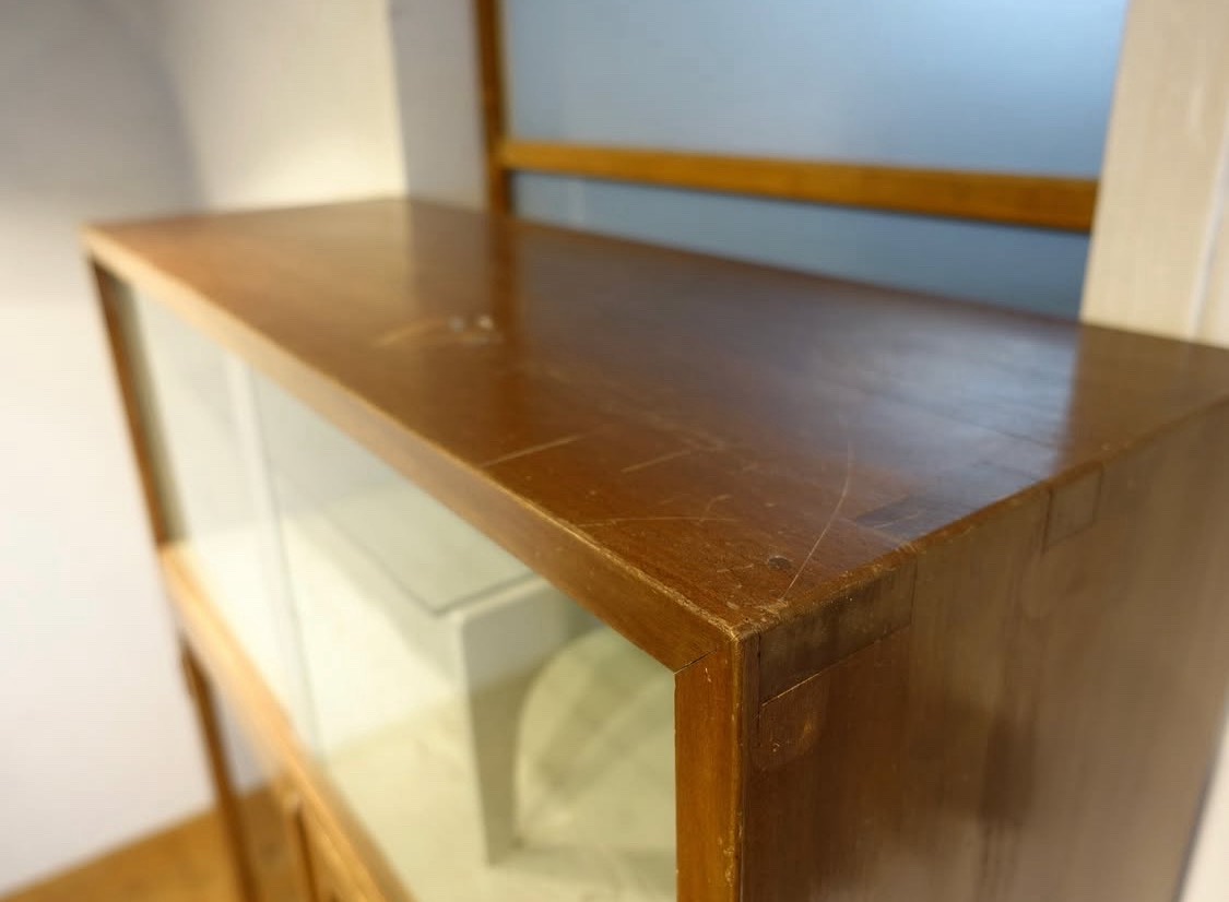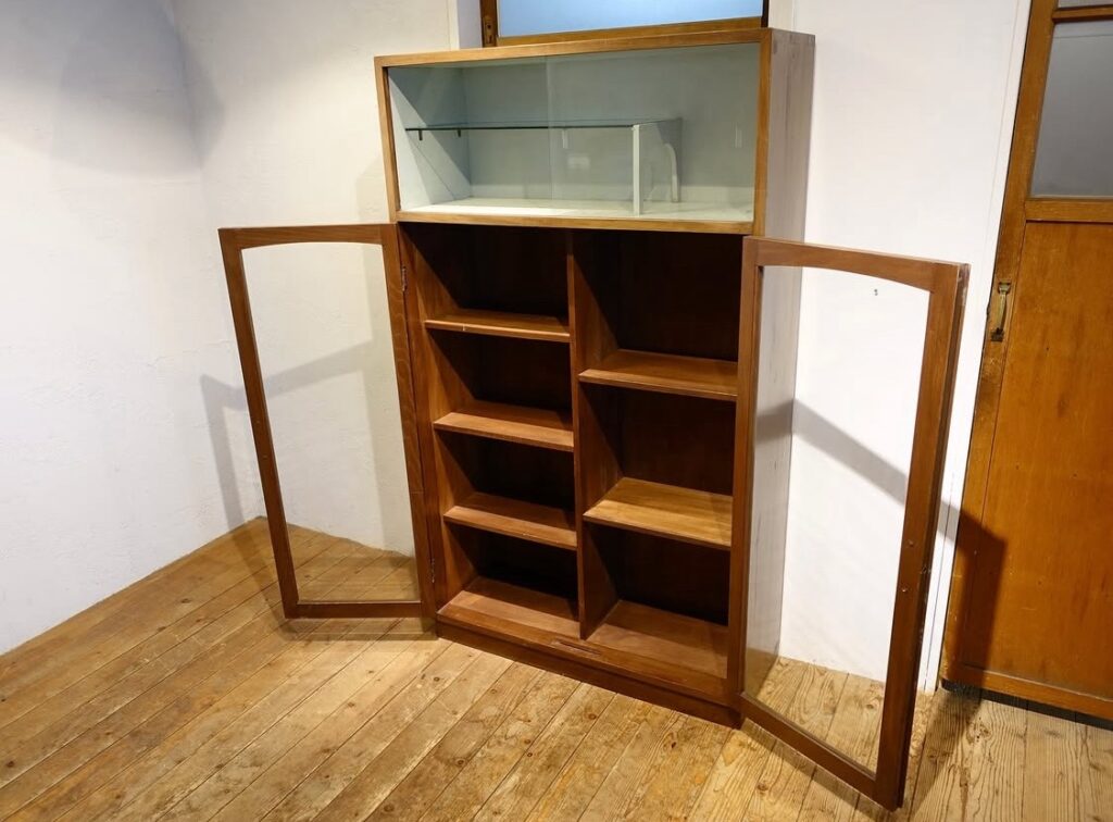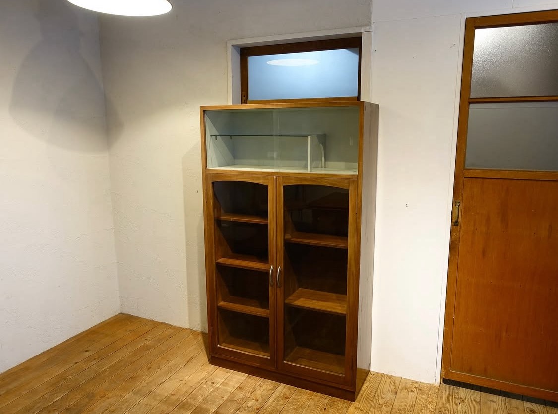[New Arrival] レトロなガラスキャビネットが入荷しております/ 無垢板でしっかりした作りのこちらは本棚としてはもちろん、コレクションケースとしてもお勧めです。 ・・・ Size : W880/D330/H1440 27,500yen